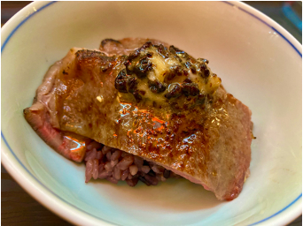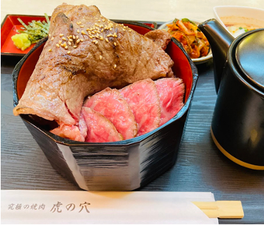 焼肉店ならではの本気で提供できる土曜の丑の日に向けた夏のスタミナ強化・疲労回復メニューを考えた結果、黒毛和牛のトモサンカク・シンシンを使った肉まぶし重にリブカルビで蓋をした黒にこだわった和牛肉まぶしを開発しました。