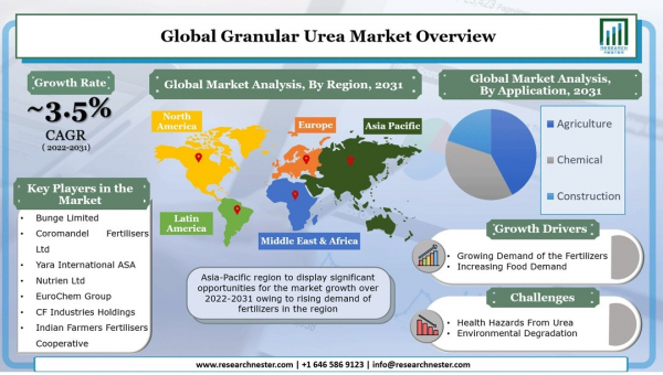 Research Nester Private Limitedは、粒状尿素市場の予測評価を提供する調査レポートを2022年07月 14日 に発刊しました。これは、粒状尿素市場の成長ドライバー、市場機会、課題、脅威など、いくつかの主要な市場ダイナミクス強調しています。