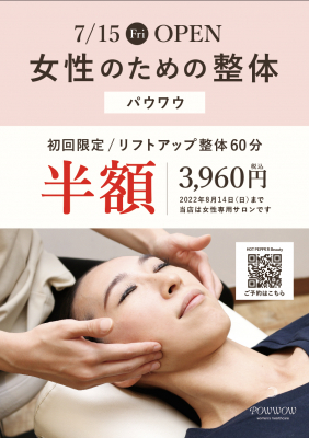 ウィメンズヘルスケアサロンPOWWOW(パウワウ)は、「女性による女性のためのヘルスケアサロン」です。 2004年には銀座の雑居ビルで開業し、現在関東圏の商業施設を中心に12店舗を展開しております。仙骨に注目し開発した独自のサクラムバランステクニックで骨格や筋肉にアプローチ、更にオリジナルフェムケア&フェムテック商品でケアを行うハイブリットケアを行います。整体ケア・美容整体ケア・ブライダルケア・マタニティケア・産後骨盤ケア・生理痛ケア・更年期ケアなどのコースを提供しており、女性の一生に寄り添う唯一無二のサロンとして応援させて頂いています。