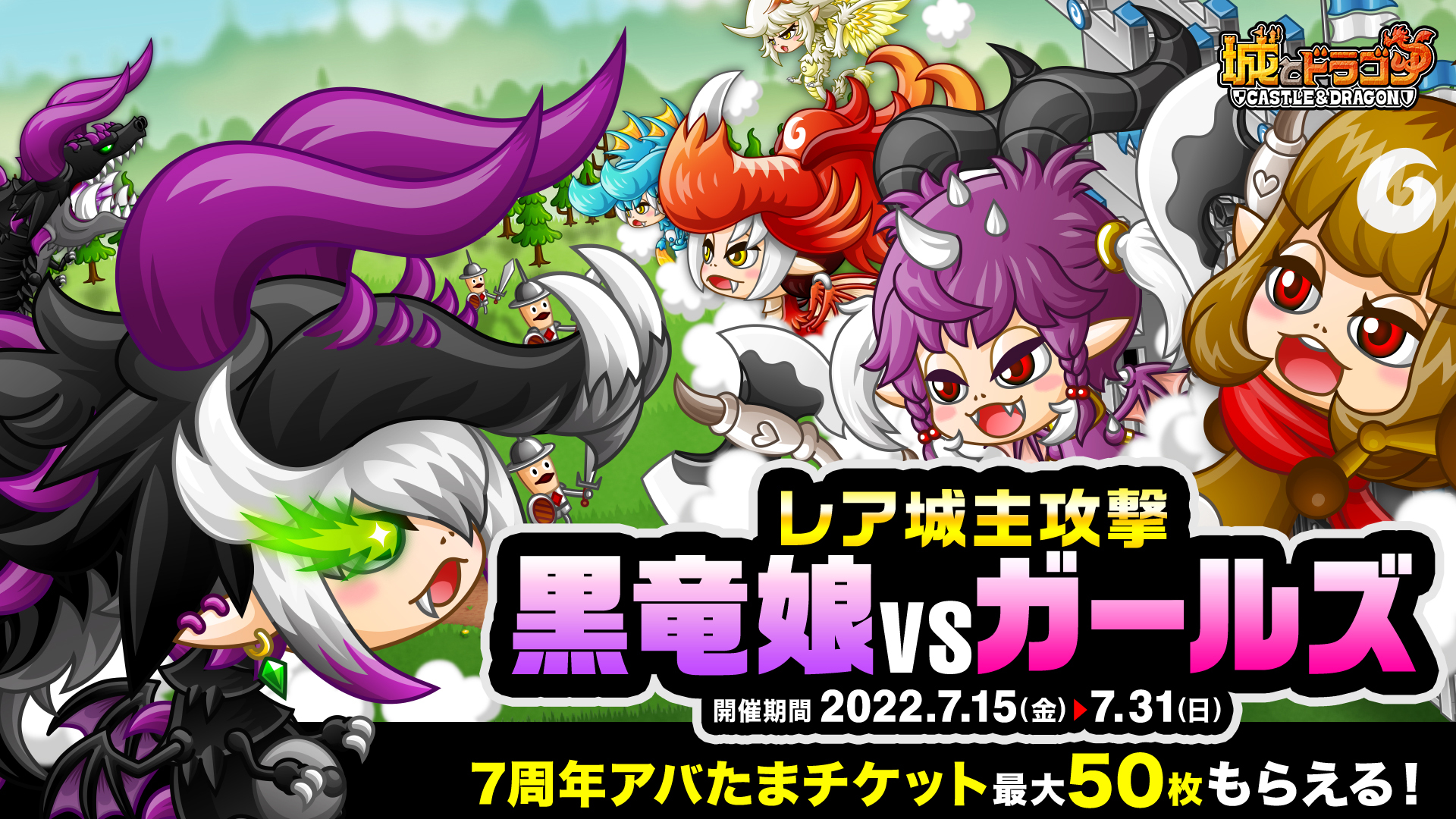 株式会社アソビズム(本社:東京都千代田区、代表取締役:大手智之)は、App Store・Google Playにて好評配信中の『城とドラゴン』で、「ありがとう7周年!城ドラ大感謝祭おかわり(後半)」を2022年7月15日(金)より開催いたします。