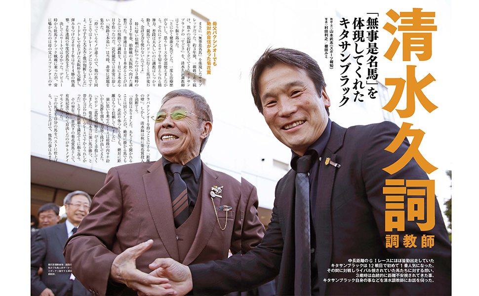 清水氏の馬たちに対する想いをはじめ、キタサンブラック自身のことなどをインタビュー。
