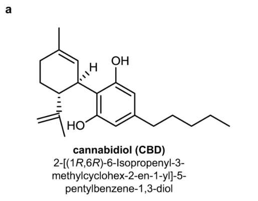 カンナビジオール。144種類ある大麻草の独自成分カンナビノイドのうち、向精神作用のない成分で、てんかんの他に、アルツハイマー病、パーキンソン病、多発性硬化症、神経性疼痛、統合失調症、社会不安、抑うつ、抗がん、吐き気抑制、炎症性疾患、関節リウマチ、感染症、クローン病、心血管疾患、糖尿病合併症などの治療効果を有する可能性があると報告されている。2018年6月に行われたWHO/ECDD(依存性薬物専門家委員会)の批判的審査では、純粋なCBDは国際薬物規制の対象外であると勧告された。