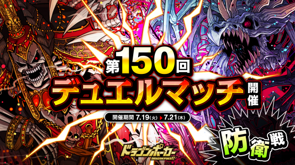 株式会社アソビズム(本社:東京都千代田区、代表取締役:大手智之)は、App Store・Google Playにて好評配信中のリアルタイム合体カードバトル『ドラゴンポーカー』で、2022年7月19日(火)より「第150回デュエルマッチ本戦」を開催いたします。