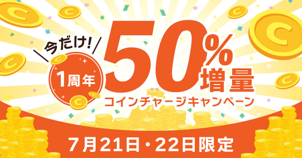 \ 7月21日、22日 限定!コイン50%増量中!!/