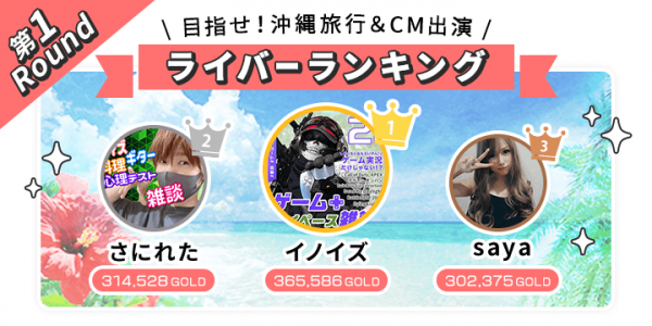 圧倒的なギフト獲得数でTOP3に輝いたのは、1位.イノイズ、2位.さにれた、3位.sayaでした☆