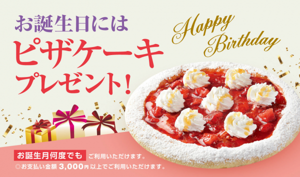 2022年7月19日より「ピザケーキ」をプレゼントいたします。お誕生月は真心を込めた当店の「バースデーピザケーキ」でお祝いに彩りを添えませんか?