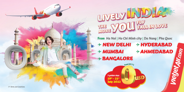 ベトジェットは新路線の就航を記念して、2022年7月19日から21日まで、18,688枚の超低価格航空券をUS0ドル(*)から提供するスペシャルチケット・プロモーションも開始します。ベトジェットの公式ウェブサイト( https://www.vietjetair.com )またはベトジェットエアモバイルアプリから予約できます。適用旅行期間は2022年8月15日から2023年3月26日(**)までで、インド-ベトナム両国間の全路線に適用されます。