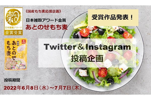 一般社団法人日本雑穀協会は、国産もち麦応援企画として、日本雑穀アワード金賞『あとのせもち麦』アレンジ利用Twitter & Instagram 投稿企画における、5点の優秀作品賞、及び入賞作品を7月19日(火)に発表いたしました。