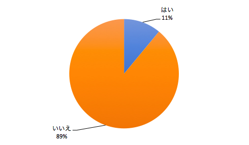 「はい」は11%(22人)、「いいえ」は89%(178人)でした。