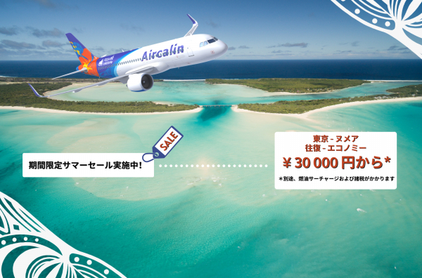 サマーセール運賃:成田―ヌメア間 エコノミークラス往復 30,000円~*(9月~10月出発の場合)