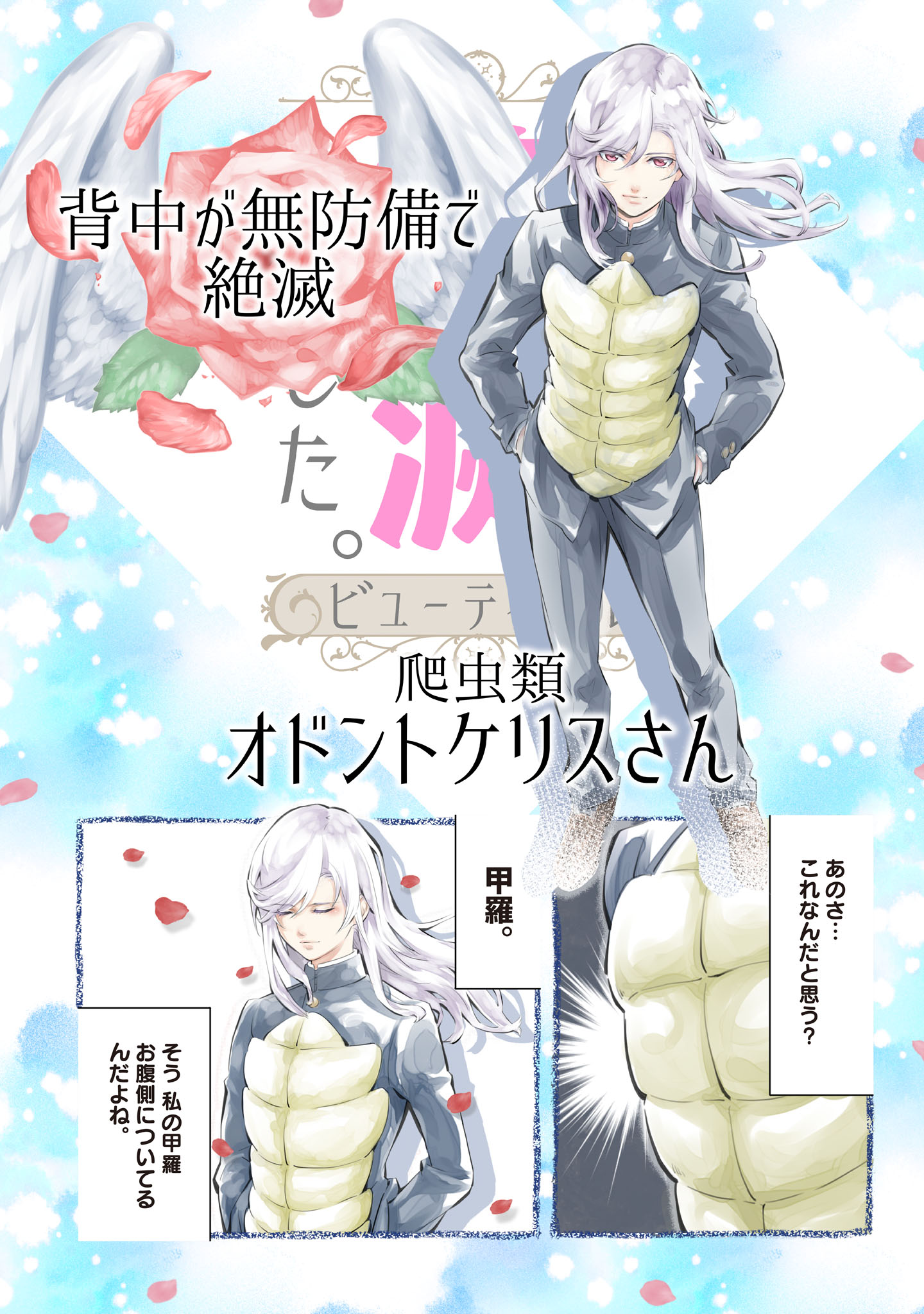 漫画を担当するのは『北斗の拳 イチゴ味』(コアミックス)でシナリオを手掛けた河田雄志氏と、「学園革命伝ミツルギ」シリーズ(スクウェア・エニックス)、『ロックマンちゃん』・『ロックマンさん』(KADOKAWA)などで同氏とコンビを組んできた行徒氏。いきものたちが地球で生きられなくなった切ない理由に、“美少年”を重ねることでより一層の儚さを伝えるという前代未聞な“絶滅いきもの”ד美少年”プロジェクトにご期待ください。