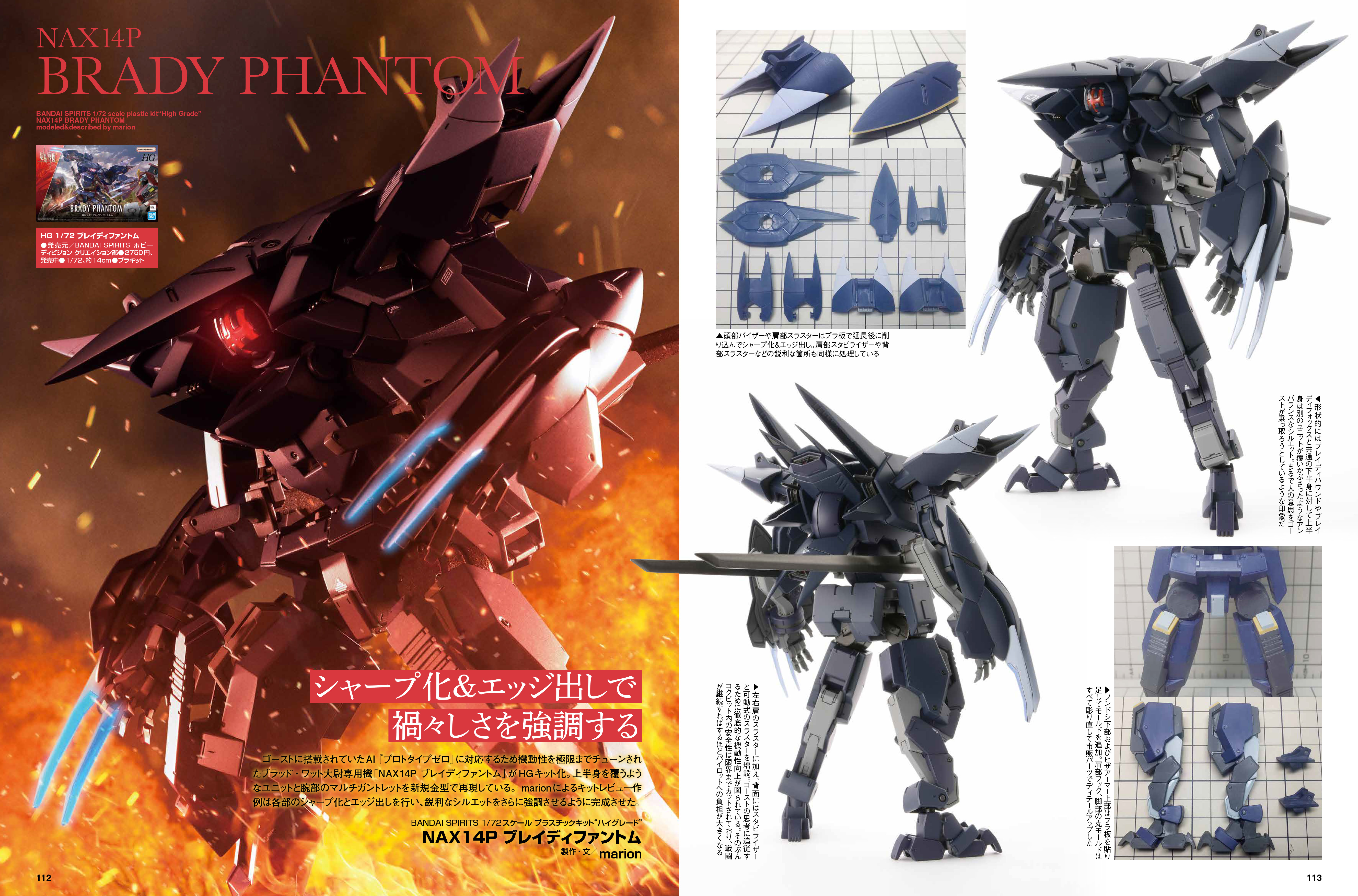 プロモデラー・marion氏によるキットレビュー作例は各部のシャープ化とエッジ出しを行い、鋭利なシルエットをさらに強調させるように完成させています。