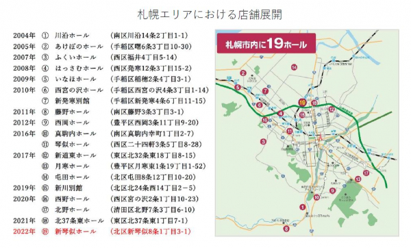 これまでは新道東ホール、屯田ホール、新川別館、北37条東ホールの4か所で市内北東部の皆様のご要望に応えてまいりましたが、新琴似ホールはJR新琴似駅から徒歩3分と利便性が高く、この地域にお住まいの方々に、さらなる選択肢を提供します。