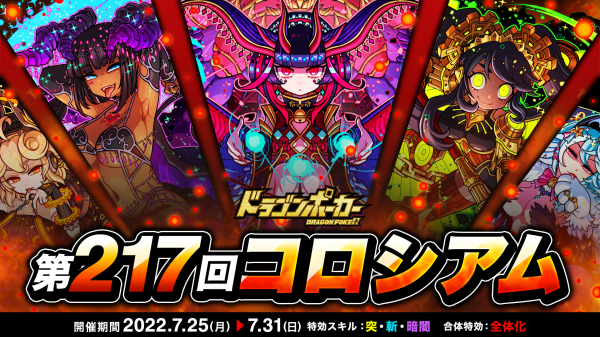 株式会社アソビズム(本社:東京都千代田区、代表取締役:大手智之)は、App Store・Google Playにて好評配信中のリアルタイム合体カードバトル『ドラゴンポーカー』で、2022年7月25日(月)より「第217回コロシアム本戦」を開催いたします。