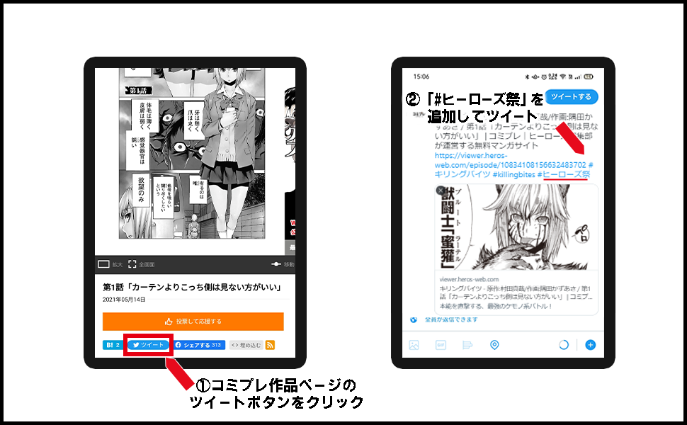 2.起動した投稿画面にハッシュタグ「#ヒーローズ祭」をつけてツイート