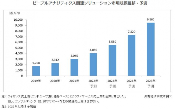 2022年のピープルアナリティクス関連ソリューション市場規模は、前年比34.0%増の40億8,000万円になると予測する。