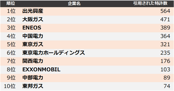 集計の結果、2021年に最も引用された企業は、1位 出光興産、2位 大阪ガス、3位 ENEOSとなりました。