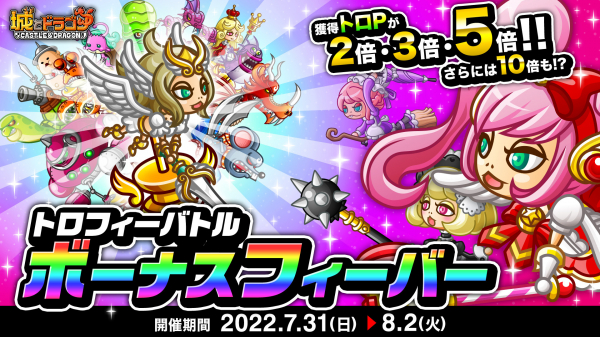 株式会社アソビズム(本社:東京都千代田区、代表取締役:大手智之)は、App Store・Google Playにて好評配信中の『城とドラゴン』で、「トロフィーバトル ボーナスフィーバー」を2022年7月31日(日)より開催いたします。
