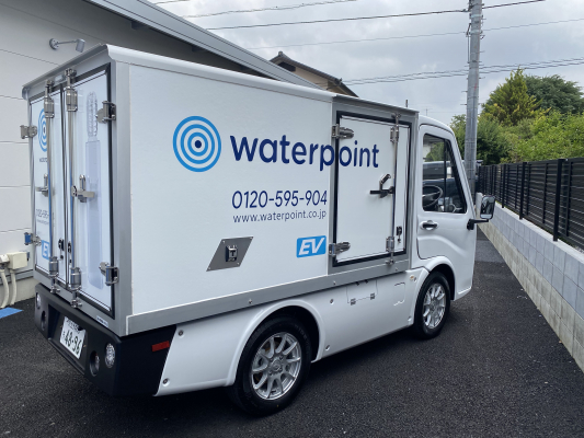 宅配水は地下水を利用し、工場から半径約7キロメートル内の配達を基本とする地産地消の仕組みです。長距離輸送をしないため、CO2排出量を抑えられます。また、配送にはEV車を導入しています。