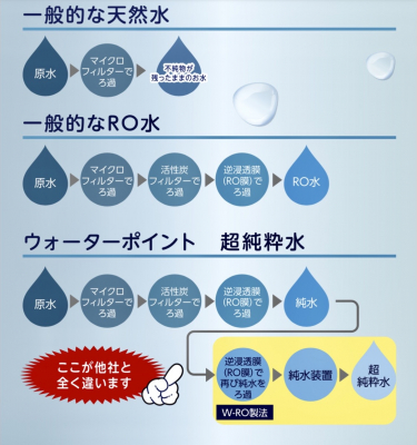 ※3 超純粋水とは、当社オリジナルの名称です。逆浸透膜のろ過を2回行うことで生成する、純水の質がさらに高い水のことを指します。ミネラルウォーター水質基準値44項目で不検出を達成しています。