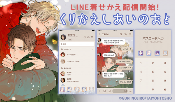 大洋図書×株式会社インクルーズが贈るLINE着せかえシリーズ第4弾は野白ぐり先生の「くりかえしあいのおと」です!今後も大洋図書とインクルーズのコラボレーションにより、続々と大洋図書作品のLINE着せかえの新作配信を予定しております。是非お気に入りのLINE着せかえを見つけてみてください。