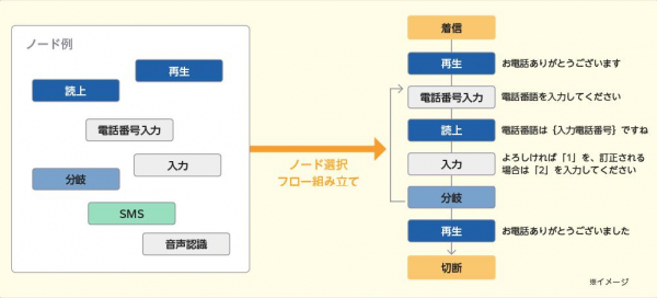 2. SMSや転送、音声合成による音声ファイル作成、音声認識による発話のテキスト化などIVRに必要な機能を標準実装