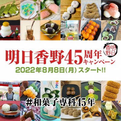 和菓子専科・明日香野は2022年8月15日をもちまして、設立45周年を迎えます。