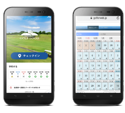 ゴルフ場独自の専用アプリが作成できるサービスです。アプリでのサインレスチェックインやプッシュ通知による情報発信、集客サポートとしてクーポン発行などゴルフ場運営で必要となる機能をご利用いただけます。