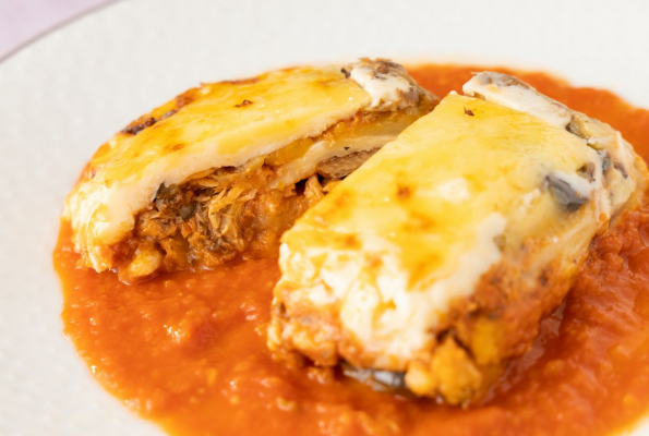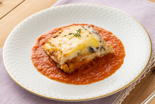 ムサカとは、揚げたナスやじゃがいも、牛やラムひき肉の上にホワイトソース、チーズを重ねて焼き上げたグラタンやラザニアに似た地中海沿岸地方の伝統的料理です。