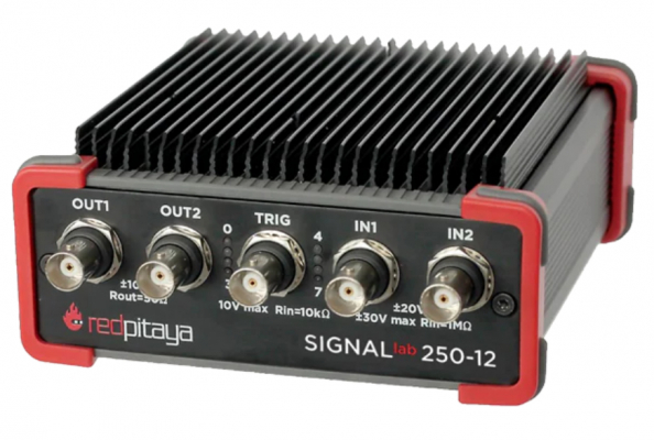 Red Pitaya SIGNALlab 250-12は、高性能の信号キャプチャおよび分析機器です。SIGNALlab 250-12は、オシロスコープ、スペクトルアナライザ、ロジックアナライザとして使用でき、今後さらに多くのアプリケーションがリリースされる予定です。SIGNALlab 250-12は、リアルタイム処理機能および高速アナログフロントおよびバックエンド性能を実現しています。小型で携帯性に優れており、Red Pitaya SCPI(プログラマブル計測用の標準コマンド)のコマンドリストを介してMatlab、Labview、Scilab、またはPythonを使用するイーサネットあるいはWi-Fi(R)でのリモートアクセスができるという利点もあります。
