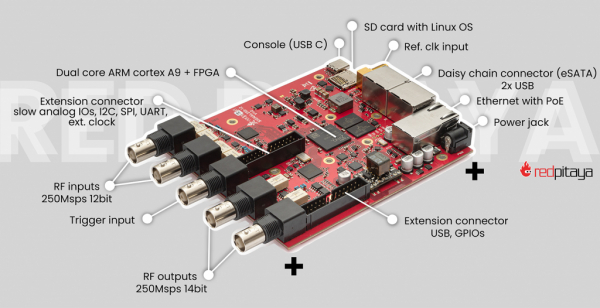 公開されたFPGAイメージは、ADC、DACなどのすべてのRed Pitayaペリフェラルへのアクセスをすでに提供しており、取得と生成なども含まれています。 Red Pitayaは、これらのイメージを最初から作成する方法、コードを編成する方法、およびこれらのモジュールを制御するためにレジスタマップを介してユーザーが持つ制御についても説明しています。テストとデバッグの目的でこれらのレジスタを簡単に制御および操作できるようにする監視コマンドラインツールも利用できます。ザイリンクスSoCテクノロジーにより、Red Pitayaデバイスで実行されているLinuxからFPGAイメージを瞬時にロード/置換できるため、開発とテストがさらに迅速になります。FPGAをCコードとインターフェースさせたい場合は、CAPIプログラミングの例を参照することをお勧めします。FPGAに慣れていない場合は、FPGAロジックとVerilogプログラミング言語の概要から始まり、単純なものから高度なものまで続く一連の優れた例が付属するFPGA教材から始めることも可能です。