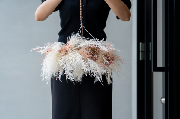 この度、広島県内の方はもちろん、県外にお住まいの方々にも気軽にお楽しみいただきたいという想いから、オンラインショップオープンに至りました。フラワーアーティストが一つ一つ丁寧に旬のドライフラワーをあしらったシャンデリアは、空間演出の役割を担う、特別な一点ものの照明です。