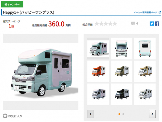 当サイトは、これからキャンピングカーの購入を検討されている方へ向けた日本最大級のキャンピングカーの比較サイトです。国内・海外を含む800台以上のキャンピングカーを、価格や車両サイズ、就寝人数やオプション装備など、約60種類の項目からスペック比較ができ、どのキャンピングカーが人気かを一定期間の閲覧数を基にランキング形式で表示。