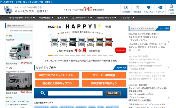 「キャンピングカー比較ナビ」では、登録されている800台以上のキャンピングカーから2022年7月における閲覧数が上位のキャンピングカーランキングを集計しました。