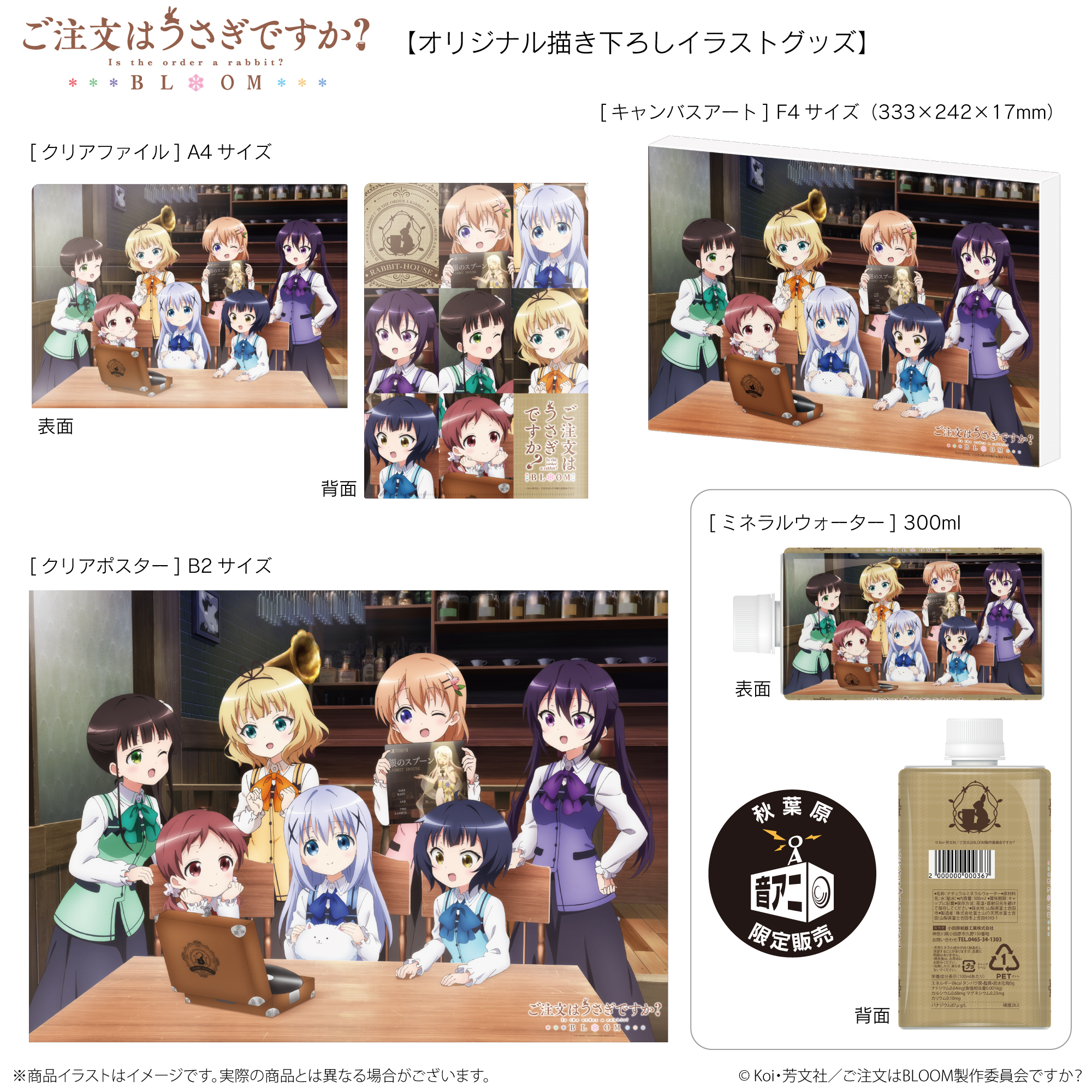 ※「ミネラルウォーター」は秋葉原店舗 「音アニ」限定商品となります。