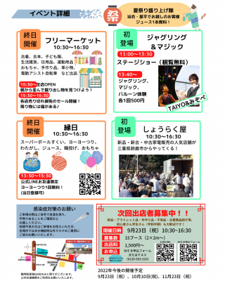 その為、出店者さんから頂いた出店料はすべて多くの地域の方が来場し楽しんでいただけるよう、地域の方へのイベント告知活動に使用させて頂いております。
