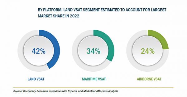 VSATの市場規模は、2022年の75億米ドルからCAGR16.9%で成長し、2027年には164億米ドルに達すると予測されています。VSAT市場は、過去数年にわたり大きな成長を遂げており、今後も継続して拡大すると見られています。この成長は、多様な業種からのVSATシステムに対する需要の高まりに起因しており、VSATモバイルソリューションの需要の高まりや、高スループットの衛星サービスへのニーズの高まりも、市場を牽引するものと思われます。