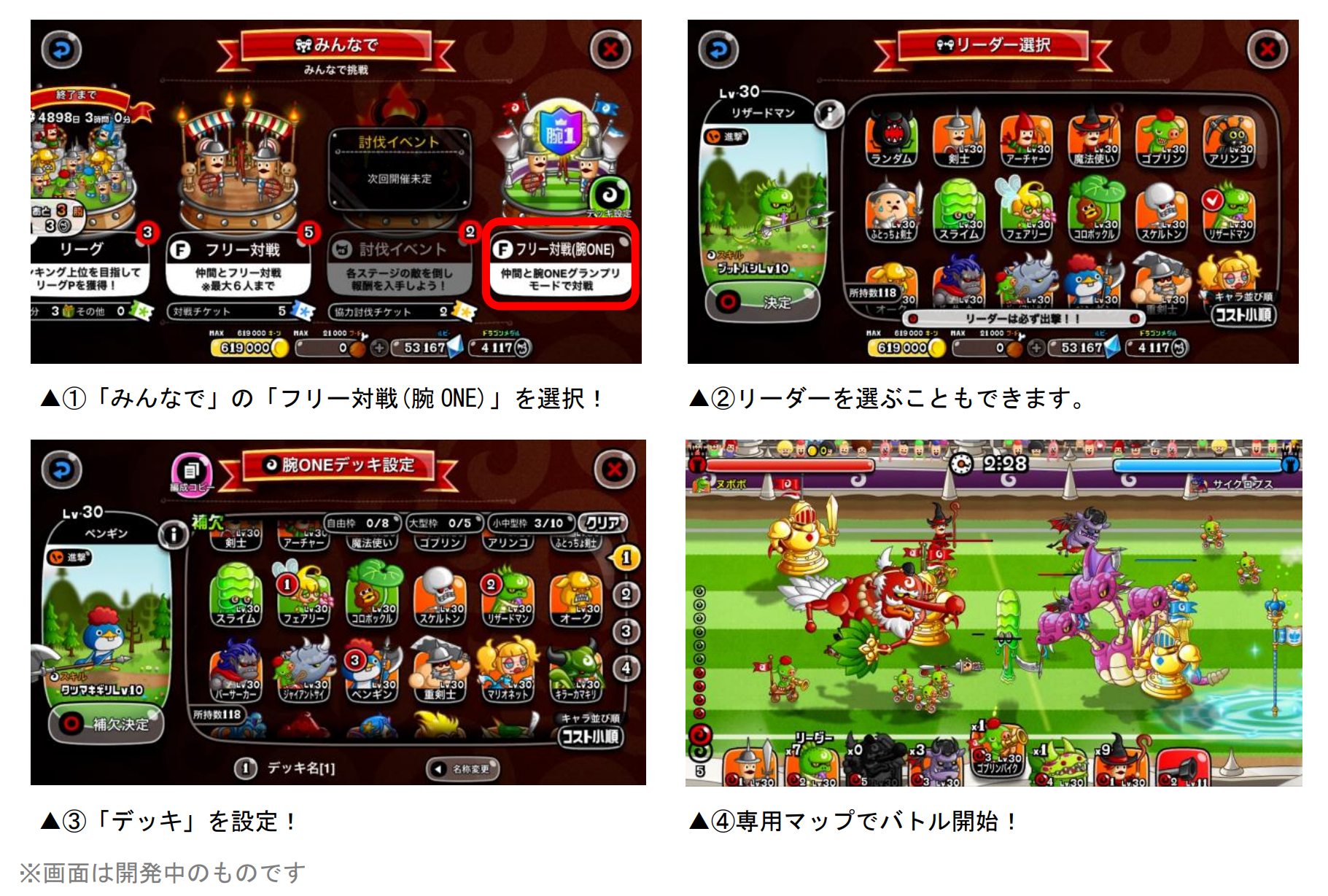 8月5日(金)メンテナンス後より、「フリー対戦」の新モードに、「腕ONEグランプリモード」が新登場。「腕ONEグランプリモード」は、『城ドラ』初の賞金付き大会『城ドラバトルフェス2022 腕ONEグランプリ グランドチームバトル』で使用するバトルシステムで遊べるほか、1日に何回でも遊ぶことができます。ぜひこの機会に「腕ONEグランプリモード」をお楽しみください!