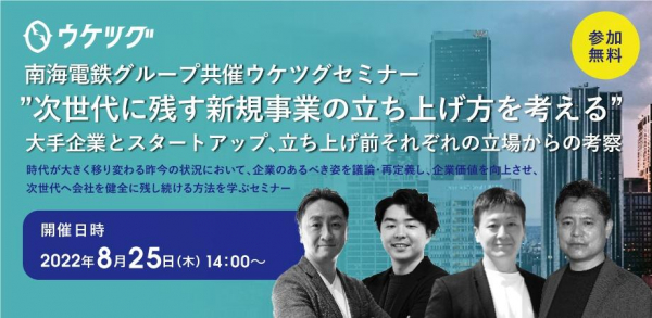 イベント名:南海電鉄グループ共催ウケツグセミナー「次世代に残す新規事業の立ち上げ方を考える」大手企業とスタートアップ、立ち上げ前それぞれの立場からの考察