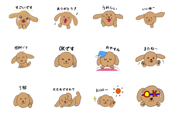 *日常生活に使えるものから、「夢活中!」「夢活しよう」「夢活したよ」などの夢活スタンプ、「夢検定1級」「夢検定2級」「夢検定3級」などの夢検スタンプが40個あります