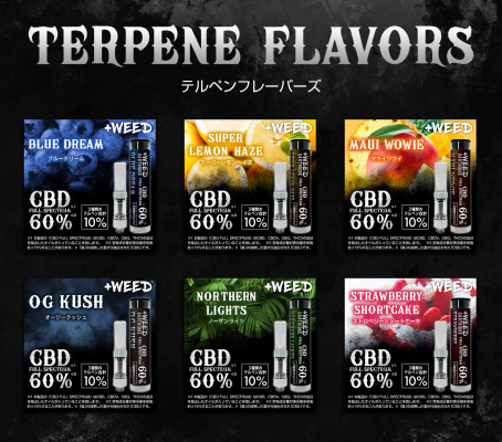 株式会社GREEN RUSH BY WEEDは、【+WEED(プラスウィード)】から、この度、プラスウィード カートリッジCBDフルスぺクトラム60%、3種類のテルペン合計10%のテルペンフレーバーズ全6種類を2022年8月10日(水)より発売いたします。