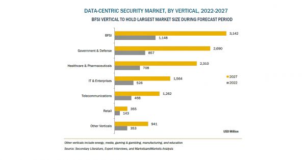 データ中心型セキュリティの市場規模は、2022年の42億米ドルからCAGR23.9%で成長し、2027年には123億米ドルに達すると予測されています。ライフサイクル全体を通して最も重要なデータを発見、分類、保護、追跡する必要性、政府のコンプライアンスと規制、データ侵害事件の増加が、全世界のデータ中心型セキュリティ市場の成長を促進しています。