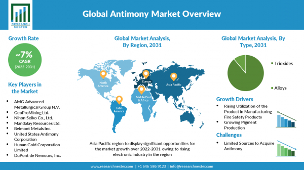 Research Nester Private Limitedは、アンチモン市場の予測評価を提供する調査レポートを2022年08月 09日 に発刊しました。これは、アンチモン市場の成長ドライバー、市場機会、課題、脅威など、いくつかの主要な市場ダイナミクス強調しています。
