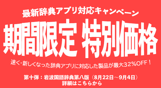 また、この「LogoVista 電子辞典 専用アプリ」を多くのお客様にご利用いただくため、ロゴヴィスタ直販サイト限定で『岩波国語辞典第八版』が期間限定特別価格となる「最新辞典アプリ対応★キャンペーン」を開催いたします。