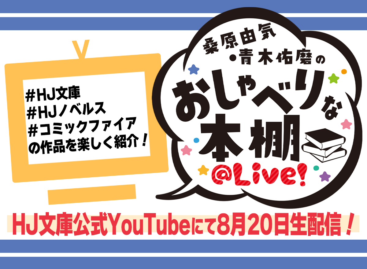 株式会社ホビージャパン(本社:東京都渋谷区、代表取締役社長:松下大介)は、同社のレーベルHJ文庫・HJノベルス・コミックファイアの作品を紹介する生放送番組『桑原由気・青木佑磨のおしゃべりな本棚@Live!』を8月20日に公式Youtubeチャンネルにて配信いたします。