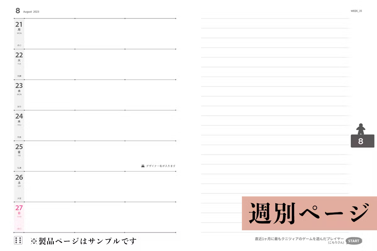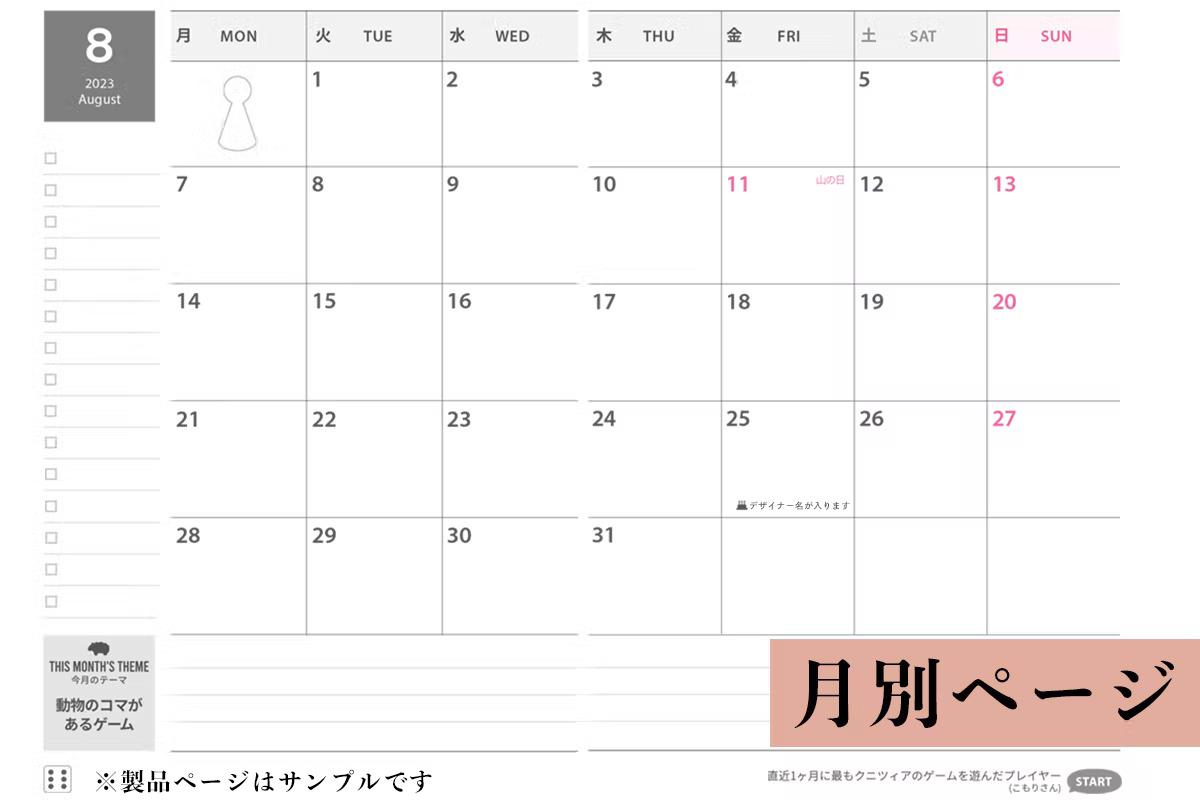 「ボドゲ手帳2023」は2023年1月始まり/月曜始まりのウィークリースタイルです。