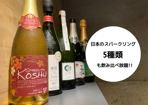 国産スパークリングワインは、特別に5種類が飲み比べ放題でお楽しみいただけます。