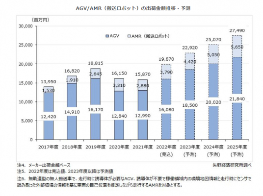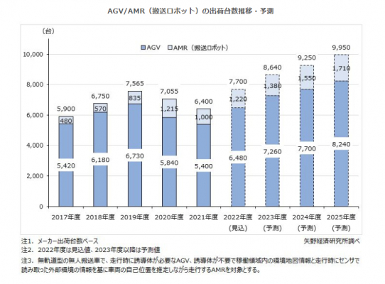 株式会社矢野経済研究所(代表取締役社長:水越孝)は、国内のAGV/AMR(搬送ロボット)市場を調査し、タイプ別動向、参入企業動向、将来展望を明らかにいたしました。