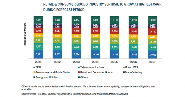 コンタクトセンターソフトウェアの市場規模は、2022年の352億米ドルからCAGR21.6%で成長し、2027年には937億米ドルに達すると予測されています。COVID-19は、遠隔操作によるカスタマーサービスセンターの通話量の上昇をもたらし、コンタクトセンター市場に好影響を与えました。