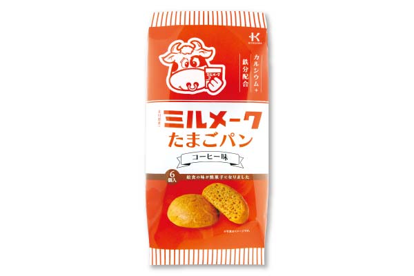 『北川製菓のミルメークたまごパン コーヒー味』は大島食品工業(株)の「ミルメーク コーヒー」を生地に練り込み、もっちりとした食感に仕上げた手のひらサイズのたまごパンです。しっかりとした「ミルメーク コーヒー」の味わいをお楽しみ頂ける様、最適な分量の「ミルメーク コーヒー」を生地に練り込み、加えてカルシウム、鉄分を生地に配合する事でエンドユーザに手にとって頂きやすい商品設計としました。また商品パッケージはミルメークのイメージをベースにレトロな雰囲気をエッセンスに加え、全体的にクリーンでシンプルなデザインとしました。